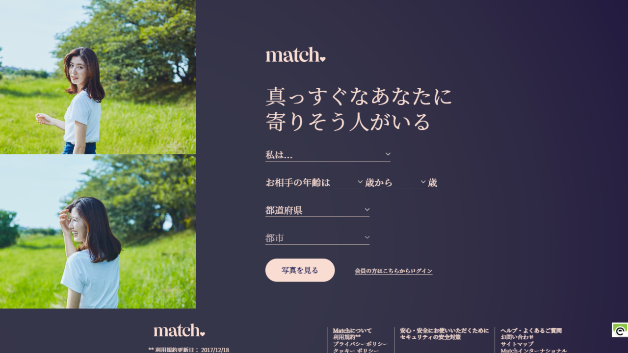 マッチ・ドットコム(Match.com)は1995年にアメリカで誕生したマッチングサービスです。国内向けの運営は日本法人ですが、海外発祥ということもあり、他のマッチングアプリとは一味違った雰囲気を味わえます。